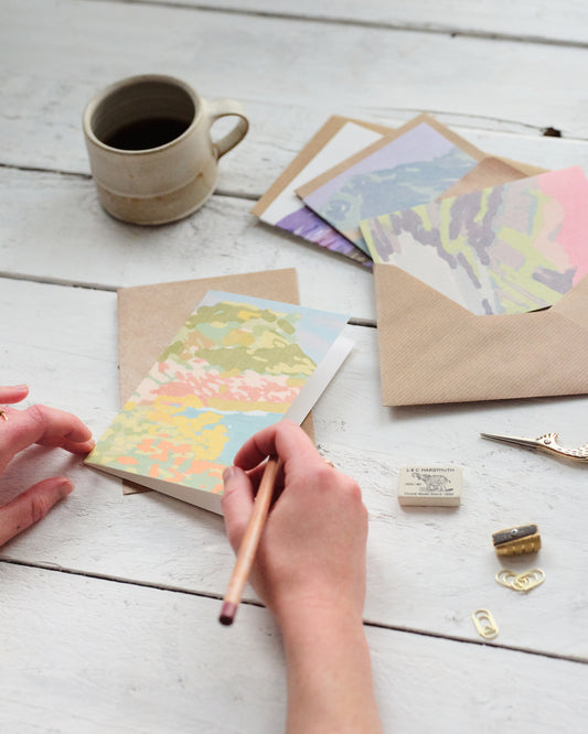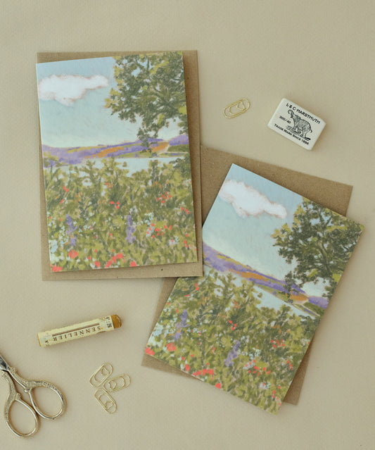 • Pink Isle of Skye Scottish Mountains Greetings Card
