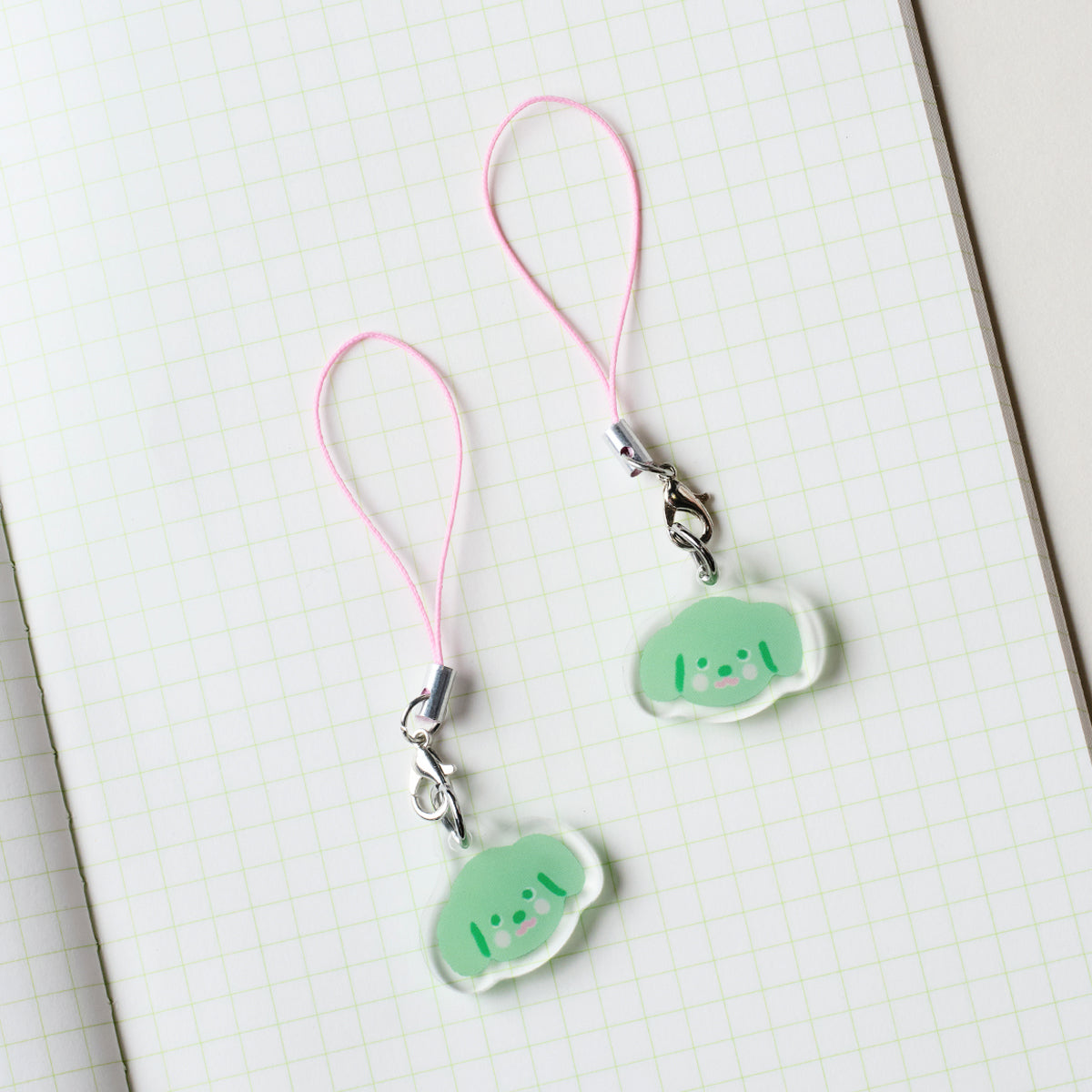 This cute green dog charm is perfect for adding a bit of fun to your phone, bag, or keys.